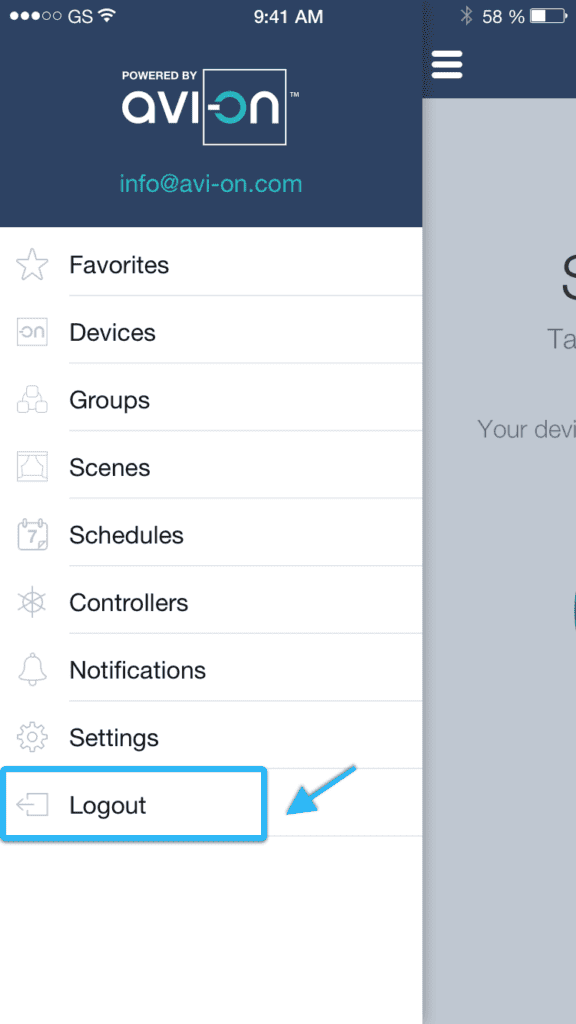 Note:  Once you log in once, it is not necessary to log in again each time you use the application, even if it is closed and re opened.  To preserve your login, refrain from logging out of the app (using the log out button) unless you want to change Avi-on accounts.