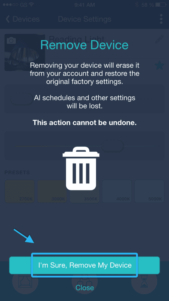 Remember, the device must be turned on and in range for the removal process to be successful.