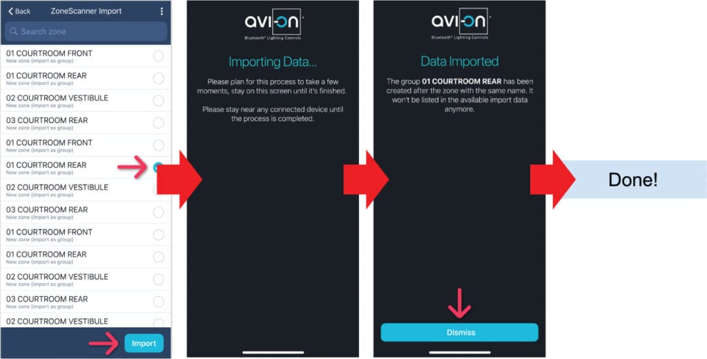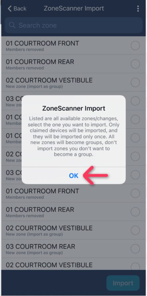 Once devices have been claimed within a location, the ZoneScanner import functionality of the Mobile Commissioning App creates groups for each zone, assigns devices to their respective groups, and renames devices to match the group prefix.