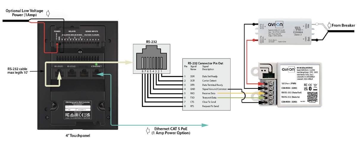The Avi-on® 4” Touch Screen Kit delivers a fully integrated, turnkey solution for local touchscreen control of Avi-on lighting control systems. The high-resolution display is fully customizable, enabling intuitive, application-specific layouts. Communication is managed through a system controller and an RS-232 serial interface, providing access to the full set of two-way Avi-on control commands.